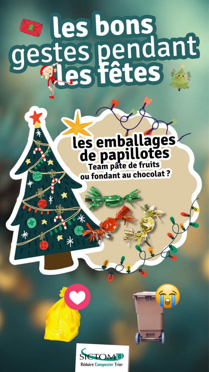 Les fêtes de fin d’année sont synonymes de joie… mais aussi de quantité importante de déchets : papiers cadeaux, emballages, bouteilles, sapins, cartes de vœux…